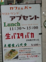 錦糸町にある「アブセント」さんにて、パスタランチを食してきました丸井の裏あたりにある感じでしょうか? 開店してすぐに入りましたバーの雰囲気で昼も少し照明が控えめ、大きいモニターから音楽番組が流れてました頼もうと思っていた渡り蟹のトマトクリーム、今日はないと言われてしまい、残念でしたなので、次に気… 2013/09/19