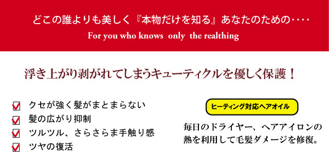 エクセルパティエンスジャパン様の濃厚アウトバストリートメント【天使の涙】をご紹介させていただきます。キューティクル成分(18MEA)を多く含む植物性オイルを20種類もブレンド。キューティクルを紫外線、物理損傷から守り、シャンプー・トリートメントで得た保湿成分を閉じ込めトリートメント効果を長持ちさせます。また“ヒートアクティブ効果”により、ドライヤーやアイロンなどで加熱すると更に浸透力がアップし髪をさらさら、ツルツルかつ、しっとりまとまりのある髪に仕上げます。セット時にアイロンやコテなど使