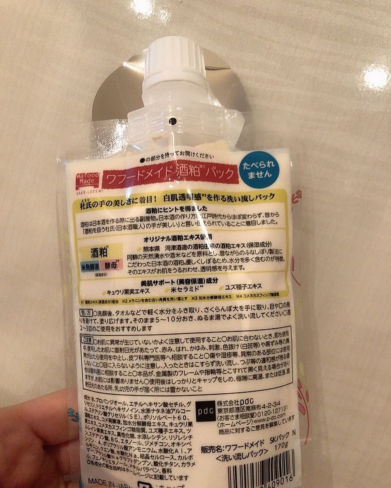 初めて酒粕パックをしたのですが、洗い流したあととってもお肌がツルツルになってワントーン明るくなりました😳 次の日の化粧ノリもよかったです💄 昔から「酒粕を扱う杜氏(日本酒職人)の手が美しい」と言い伝えられ、手作りの洗い流しの酒粕パック美容法が広まっていったそうです。そんな酒粕美容法を毎日のスキンケアに手軽に取り入れられるようにつくられたのがこの酒粕パック🌱 週2~3回使うことでメラニンを含む古い角質を洗い落とし、うるおって透明感のある白肌へ導いてくれるらしいので継続していきます💡 #pdc #ワフードメイド #洗い流しパック #酒粕パック #お風呂美容 #ながら美容 #monipla #pdc_fan