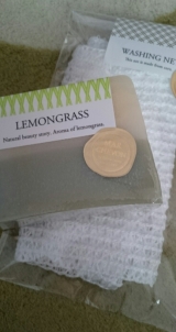 〔成分〕水、石ケン素地、グリセリン、PG、ソルビトール、ラウレス硫酸Na、ラウリル硫酸Na、レモングラス葉/茎エキス、香料、塩化Na、ステアリン酸、ラウリン酸、ミリスチン酸、酸化チタン、エチドロン酸4Na、ペンテト酸5Na、BG、酸化鉄、グンジョウ、マイカ