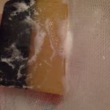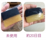 〔成分〕水、石ケン素地、グリセリン、PG、ソルビトール、ラウレス硫酸Na、ラウリル硫酸Na、香料、アルガニアスピノサ核油、モロッコ溶岩クレイ、炭、チタン酸コバルト、酸化チタン、酸化鉄、マイカ、カラメル、塩化Na、ステアリン酸、ラウリン酸、ミリスチン酸、ペンテト酸5Na、エチドロン酸4Na
