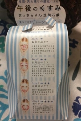 全成分/石ケン素地、水、パーム脂肪酸、パーム核脂肪酸、ココイルメチルタウリンNa、※2ベントナイト、チンピ、ラフィノース、オリーブ果実油、アセロラ果実エキス、シア脂、スクワラン、ショウガ根茎エキス、ハッカ油、グリセリン、ジグリセリン、※3シクロヘキサン−1,4−ジカルボン酸ビスエトキシジグリコール、コカミドプロピルベタイン、PEG-60水添ヒマシ油、PEG-90M、乳酸Na、ステアリン酸PEG-75、塩化Na、酸化チタン、シリカ、BG、エチドロン酸、エチドロン酸4Na、EDTA、EDTA−4Na、エタノール、香料