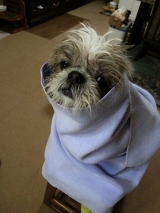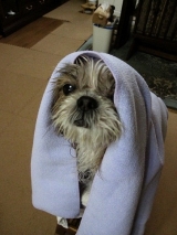 今日のプル家地方は、あいにくの雨 プルは、お外でトイレ派なんで 足は汚れるし、もちろん身体も濡れます 外でトイレ派のワンの飼い主さんの悩みは、ワンの濡れた身体を 拭くことなんです 中途半端に拭くと、風邪を引いた… 2012/02/23