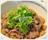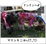 お庭遊びしていてマリンに踏まれちゃったりしていた小松菜ですが踏まれても、頑張って(^^)v伸びてきたドライフードの上に、牛肉と間引きした小松菜トッピング今日のごはん 2012/11/08