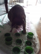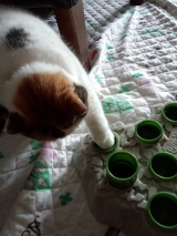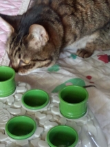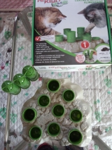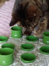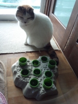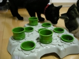 テンにこんなものが届きましたペピイさんより、『頭を使って脳トレ&ダイエット!』 こんなカンジで小さな器が9個セットされていますまずはねずみんたちにがんばってもらって テンションあげてくれると思ったんだけどな ちょいちょいで終わっちゃいましたそして、本家本元のつかいかたでカリカリを うん… 2014/01/31