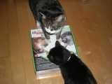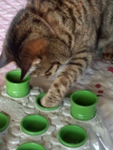 兄さん、何か届きましたよ 何だこれは (?_?) これ、猫用脳トレ&ダイエットおもちゃです 早速、えさを仕込んで見ました 兄さん えさがあるのに取れませんね (へ) 確かに、筒の中にめったにお目にかかれない ”銀のスプーン”が入っている 食べたい(ーー;) 奥の手ならぬ… 2014/02/08