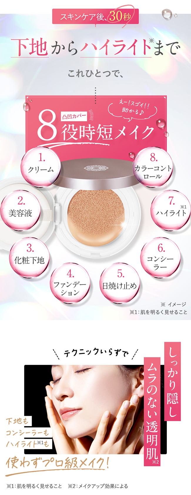 ※1:メイクアップ効果による ※2:ヒドロキシアパタイト(皮脂吸着成分)