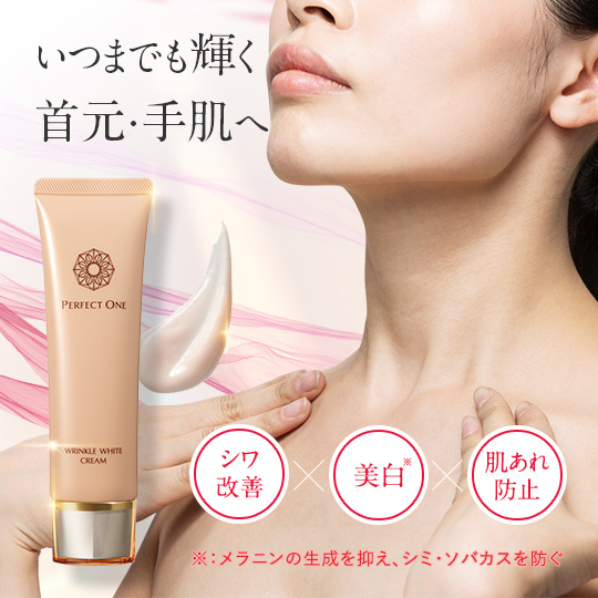 今あるシワの改善と美白※1に同時にアプローチする有効成分「ナイアシンアミド」、肌あれ対策に有効な「グリチルリチン酸ジカリウム」を配合。首元・手肌のシワ改善と肌あれ対策※2ができ、潤いに満ちた肌へ。