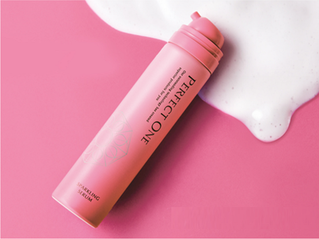 「パーフェクトワン スパークリングセラム」は、高濃度ナイアシンアミド※1をクリーミーな100%炭酸※2泡に閉じ込めた、1品で7役(化粧水、乳液、美容液、クリーム、パック、化粧下地、ネッククリーム)の機能を持つオールインワン炭酸セラムです。