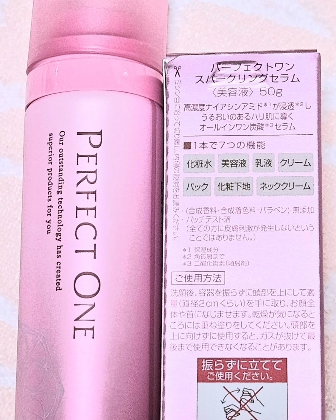 新感覚な、クリーミー泡がすごかった♥ @oyk_mama ﹏ ✍ / パーフェクトワンから新製品が発売! スパークリングセラム \ 炭酸※泡ってパチパチ刺激がある感じかな🤔? って気になってた製品! ※二酸化炭素(噴射剤) 実際に使ってみるとイメージとは180度違って とろっとクリーミーな泡が気持ち良い♥ そして…さすがパーフェクトワンさん こちらの美容液も勿論オールインワンです♪ しかも1つで7役~! 化粧水・美容液・乳液・クリーム パック・化粧下地・ネッククリーム 顔はもちろんのこと、 年齢が出やすい首までケアができちゃうの! アラサーにはありがたい話だよね🥺(笑) プシュっと出せるパッケージは衛生的だし 楽ちんなのでズボラな私的にポイント高い🥰 肌乗せるとモチッと泡がジュワッと溶けて トロッと馴染んでいくよ~ 変化するテクスチャーが不思議で楽しい(笑) 馴染ませたお肌ははりが出てツヤ増し増し! お気にいりのオールインワン美容液です♥ ━━━━━━ ∙ʚ ɞ∙ ━━━━━━ 新日本製薬株式会社 パーフェクトワン スパークリングセラム @perfectone_info ━━━━━━ ∙ʚ ɞ∙ ━━━━━━ #PR #新日本製薬株式会社 #炭酸コスメ #炭酸スキンケア #ナイアシンアミド #美容液 #パーフェクトワン #スパークリングセラム #monipla #perfectone_fan #高濃度炭酸泡美容液