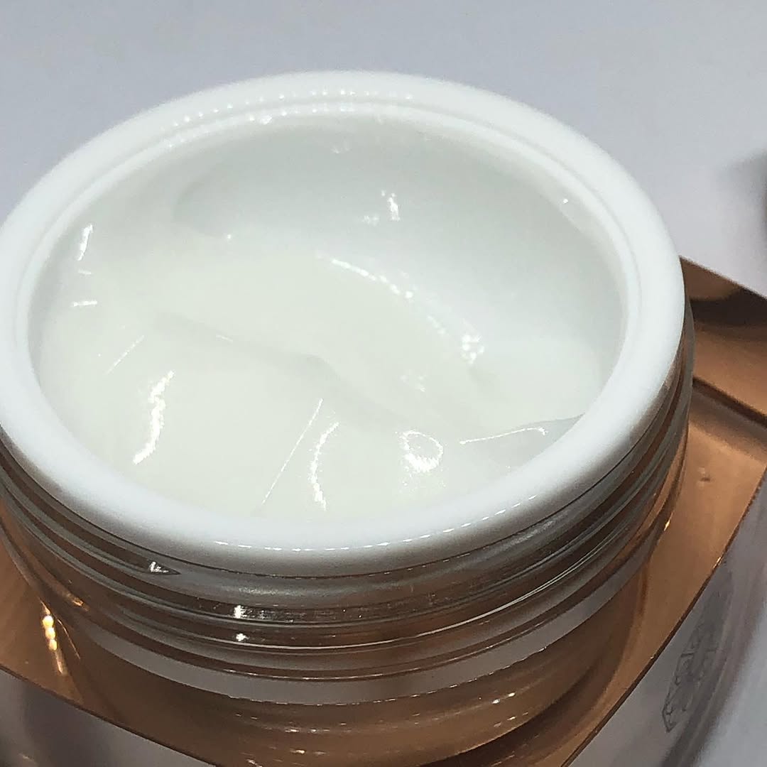 容器はジャータイプで回すタイプの蓋。ラグジュアリーな容器です。中蓋あり、スパチュラあり。