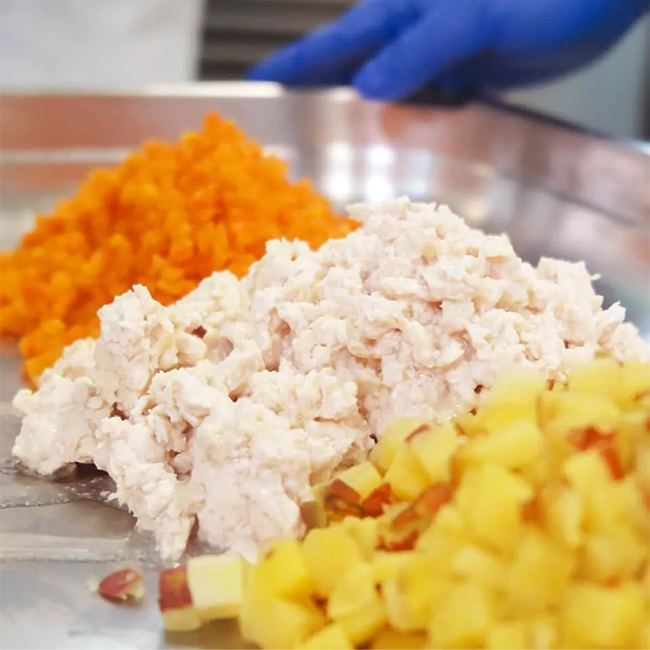 ※チキンミールなどで使われる人間が食べない部位の素材は一切使用せず、私たちが食べる食材と同じ品質の肉や野菜のみを使用。