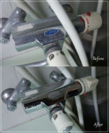 気になっていたお風呂の鏡のウロコのお掃除 ガラスクリーナー強力液体タイプを早速使ってみました before ガラスクリーナーは液体といっても クレンザーのようなテクスチャーです 付属の専用特殊ナイロンシートにつけて、磨きます 一通り磨いて、水で洗い流します シ… 2013/12/12