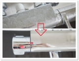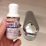 オリジナル洗剤をお届けするショッピングサイト「お掃除ソムリエ」より、特殊研磨剤ガラスクリーナー強力液体タイプ25mlと特殊な研磨用スポンジでお風呂の鏡をピカピカに掃 2014/08/04