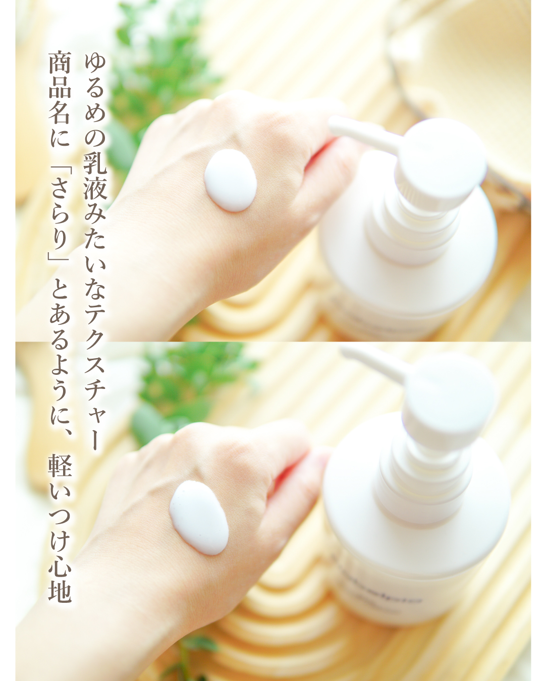 商品名に「さらり」とあるように軽いつけ心地のボディークリーム。