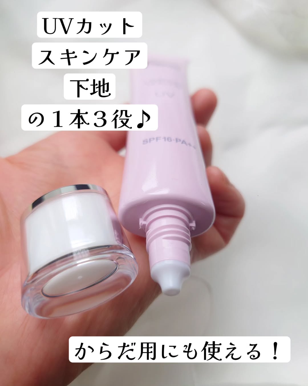 ラベンダーノンオイルUVを使用してみて、良かった点は1本でスキンケア・UVカット・下地の3役叶うところ✨