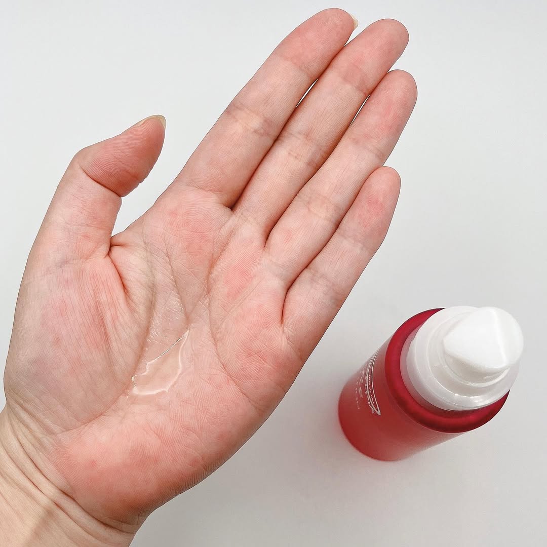 使い方は、100円玉大(1~2プッシュ)を両手のひらに広げ、顔全体に優しくおくようになじませるだけ。
