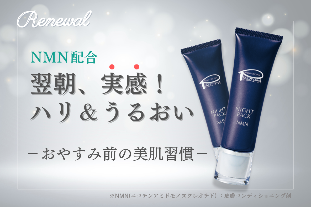 『寝ている間の集中ケア』として開発した、ジェルタイプのパックです。今、期待の成分「NMN※1」他、真珠たんぱく※1や尿素誘導体※2など、エイジングケア※3に必要な成分を配合。