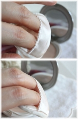 今回はコチラを使ってみましたよ↑↑ 届いたのはコレ++゚d(´∀`)グッ はいピアベルビア のパウダーコンパクトで簡単にUVできちゃうのよ 見て見て とってもコンパクト薄くて軽くいから何処にでも持ち歩ける嬉しさ パフにとってみると、こんな感じ ちょっとピンクっぽいけど 付けると白っぽ… 2012/10/15