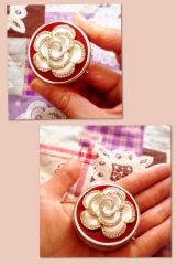 立体的なバラモチーフにクリスタルガラスを散りばめた、