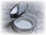 ケースの内側は使いやすそうなまっ白いプラスチック製で小さなミラー付きになっています