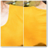 前身頃部分は2枚仕立てになっており、下着の透け感やラインがひびいたりする心配を軽減してくれます。