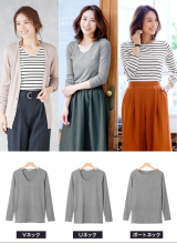 前身頃が2枚仕立てで透けにくい!3ネックから選べるテレコリブカットソー