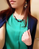 シャツインコーデにも使いやすく、重ね着もしやすいので首元がスッキリ見えて小顔効果も◎