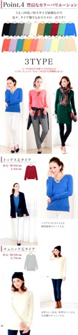 トップス、チュニック、ワンピースの3丈から選べるカシミアタッチニットセーターが新登場!