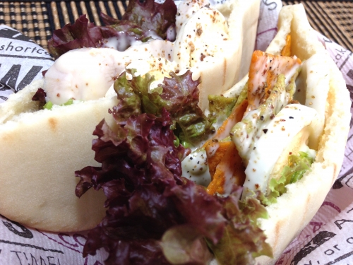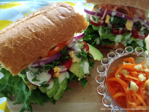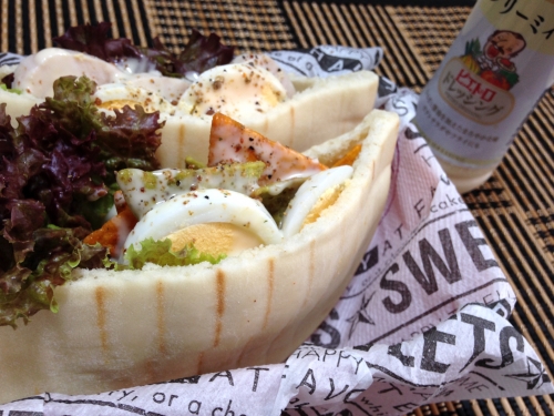 手作りの鶏ハムと卵のサンドイッチ♪更に、絶対にやってみたかったスナック菓子のサンドイッチ!タコス&アボカド味のスナック菓子をピタパンに挟んでドレッシングをたっぷりかけ、ブラックペッパーもプラスザグザグの食感とマヨネーズの風味が最高〜!新食感のサンドイッチになりました♪( ´▽`) 2016/06/25