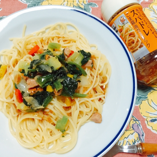 ゆでたてのスパゲティに大さじ2(30ml)のスパドレをまぜるだけでレストランの味!つぶつぶごまとガーリックが香ばしい、醤油味のスパゲティソース。ご家庭ではなかなかできなかったスパゲティの醤油味がバッチリ決まります。のりを散らすだけでも十分ですが高菜としいたけ、納豆とネギ、きのこなどお好みの具材を加えるとよりおいしく出来上がります!