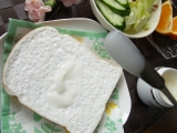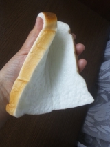 今日の朝食はトーストにたーっぷりとミルククリームを塗ってみました ん??? ウソです(笑) この食パン、ニセモノですスポンジなんですよ 本物そっくりですよね!!! 「パンだー!食べたーい」と言っていたりさに、「これ、食べられないよ」というと 「そーなの?えー???」っと… 2012/05/16