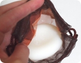 ピギーバックス ソープネットはジュエリーポーチをモチーフにオーガンジーとチュールの二重構造で、空気、水分、石けん成分が瞬時に混ざり合い、きめ細かなモチモチ泡が簡単につくれるオリジナルソープネット。