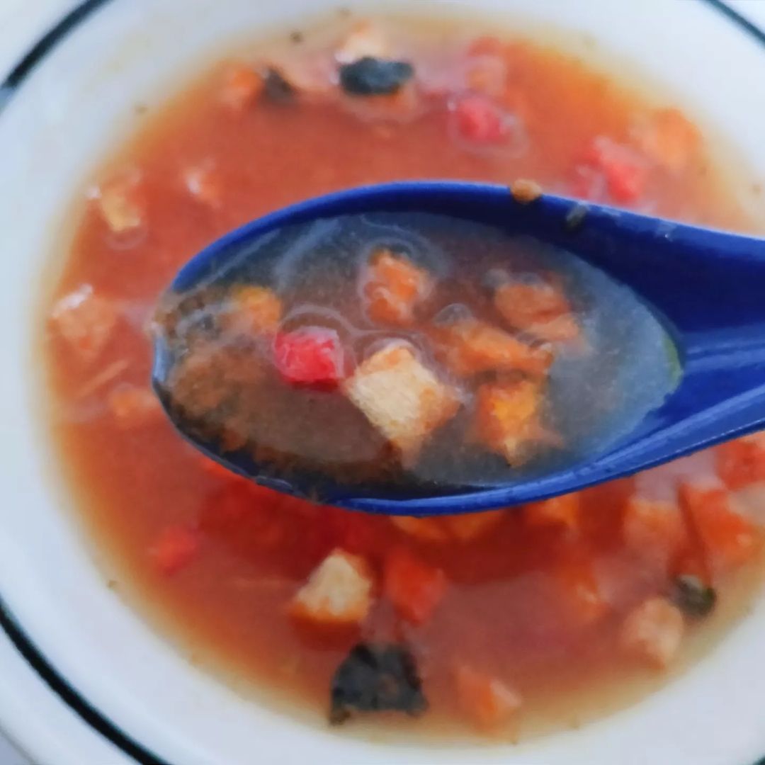 冷水で溶かすだけで本格スペインレストランの味を堪能できる、フリーズドライ製法のガスパチョ 10食セットです。 やさしい甘みが特徴のポルトガル産トマトのペーストと、フレッシュさが特徴のイタリア産トマトのジュース漬けを使用。特別な2種類のトマトを使うことで、バランスの取れた自然な酸味と甘みを実現しています。 また、本来ガスパチョは過熱を行いませんが、野菜ペースト、おろしにんにく、オリーブオイルと具材を加えて煮込むことによって、トマトのさわやかな酸味を残しながらさらに野菜の深いコクを引き出しています。 さらに隠し味として、コンソメとチキンエキスを合わせ、さらに深みを向上させつつ、日本人にも親しみ深い味にアレンジしています。 具材は赤・黄ピーマン、素揚げズッキーニ、玉ねぎをゴロゴロとした具材感でご用意。トマトのさわやかな酸味と、調理で引き出された優しい深みが特徴の、スペインの太陽を感じる本格冷製スープです。 暑い夏はもちろん、寒い冬の時期にはお湯を注いでHOTガスパチョとしてもお楽しみいただけます。