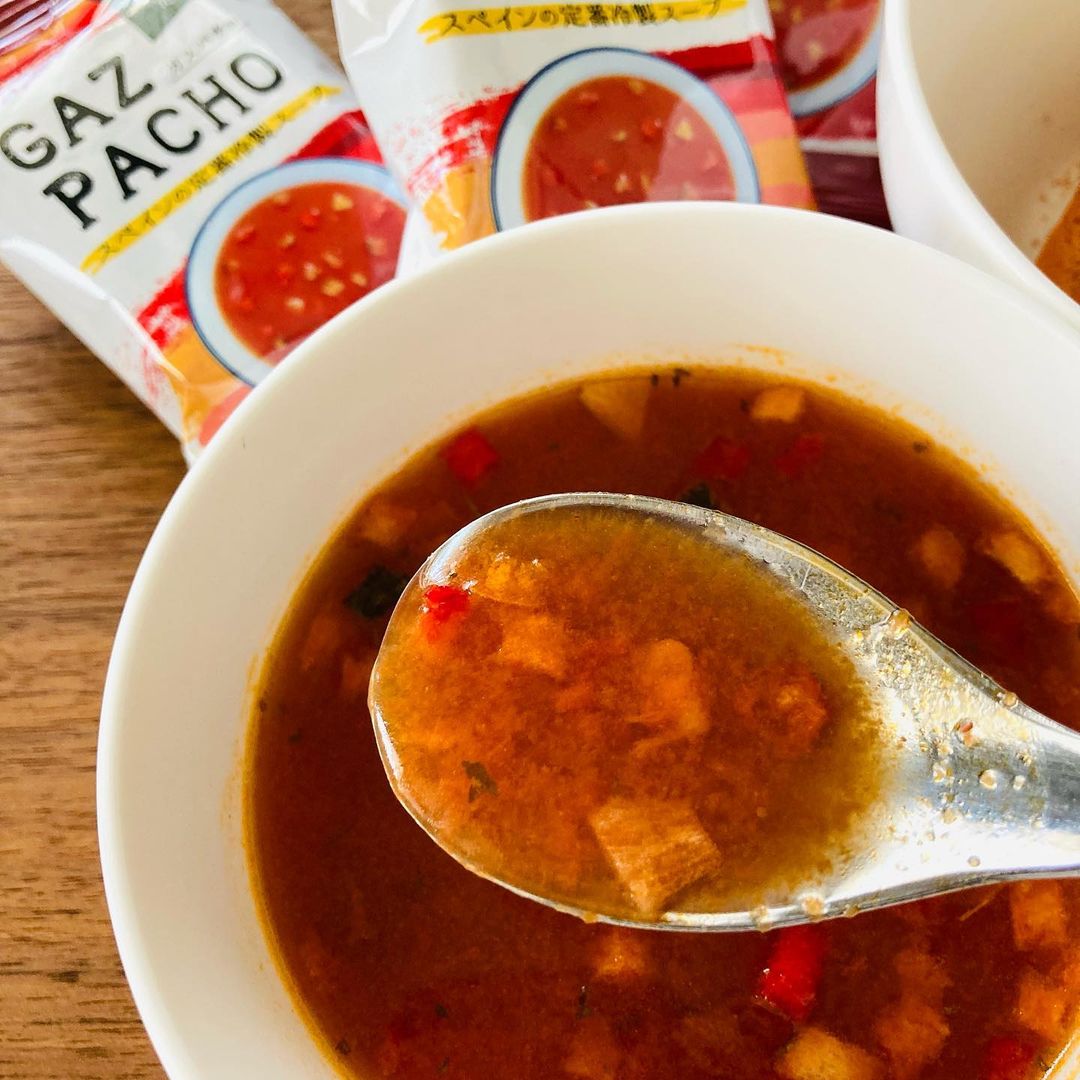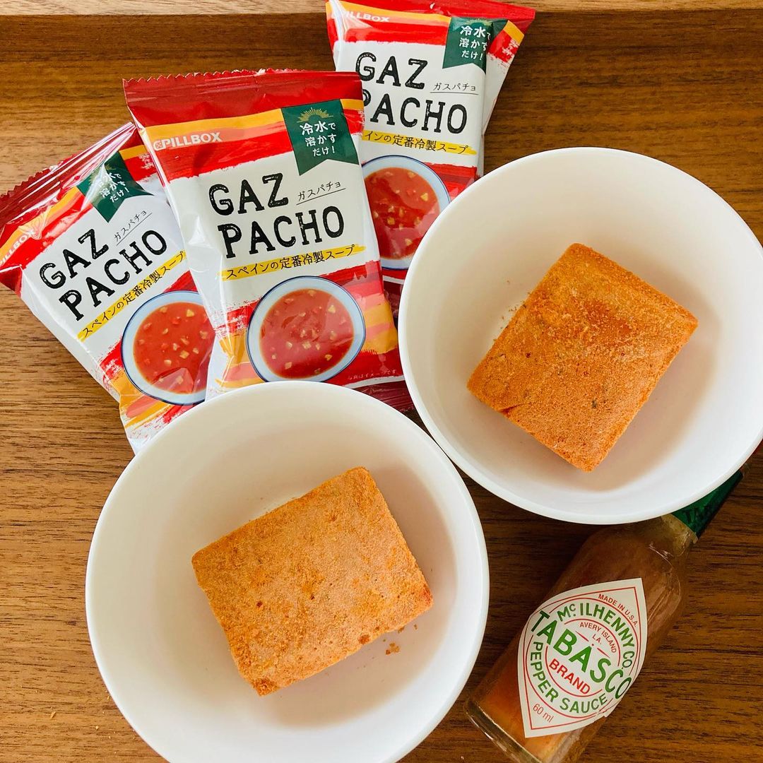 【PILLBOX】GAZPACHO「ガスパチョ) スペインの定番冷製スープ「ガスパチョ」。 冷水で溶かすだけで本格スペインレストラン級の味を堪能できる、フリーズドライ製法のスープ💗 まず、フリーズドライっていうのが手軽で素敵✨ しかもこだわりの素材で味も良い😋 ◉やさしい甘みが特徴の「ポルトガル産トマトのペースト」🍅 ◉フレッシュさが特徴の「イタリア産トマトのジュース漬け」🍅 のW使いで、バランスの取れた自然な酸味と甘みを実現。 具材は ◉赤ピーマン ◉黄ピーマン ◉素揚げズッキーニ ◉玉ねぎ がゴロゴロと🎶 動画でもご紹介していますが、冷水でもすぐに溶けて超カンタン💗 調理がカンタンなぶん、いちごや葉っぱを乗せてトッピングを楽しんでみたり🎶 アレンジメニューではパスタソースとして使ってみたり🍝 パスタの作り方は、具材を炒めたフライパンにパスタの茹で汁とフリーズドライのかたまりを入れて混ぜるだけ💁🏻‍♀️(もはやレシピと言えるほどではない💦) パスタの茹で汁はスープの時よりは少なめで。といってもどんどん蒸発していくので様子を見ながら適宜足していきます。 スープ自体にうま味とコクがあるので、あとは塩コショウで味を整えるだけでOK😊 見た目は色濃くないですが、思った以上に味が付いています🙆‍♀️ このガスパチョ、トマトがたっぷり入っているのに思ったほど酸味はなく、飲みやすいスープです。 ゴロゴロ野菜もしっかり入っているので満足感高し👍🏻 160mlの冷水(またはお湯)で溶かすのですが、結構しっかり量があります。 今回はパスタにアレンジしましたが、スープリゾットにしても良さそう💗 とにかくチーズと合うんです🧀🐭💗 これからの季節、お素麺に合わせても美味しそうだし…いろんなアレンジが試せそうでワクワクします🎶 u0040pillbox_japan #ガスパチョ #トマトスープ #ホットガスパチョ #hotガスパチョ #冷製スープ #スープレシピ #スペイン #フリーズドライ #時短レシピ #簡単レシピ #料理好きな人とつながりたい #インスタント #ピルボックスジャパン #pillboxjapan #pillbox #monipla #pillboxjapan_fan