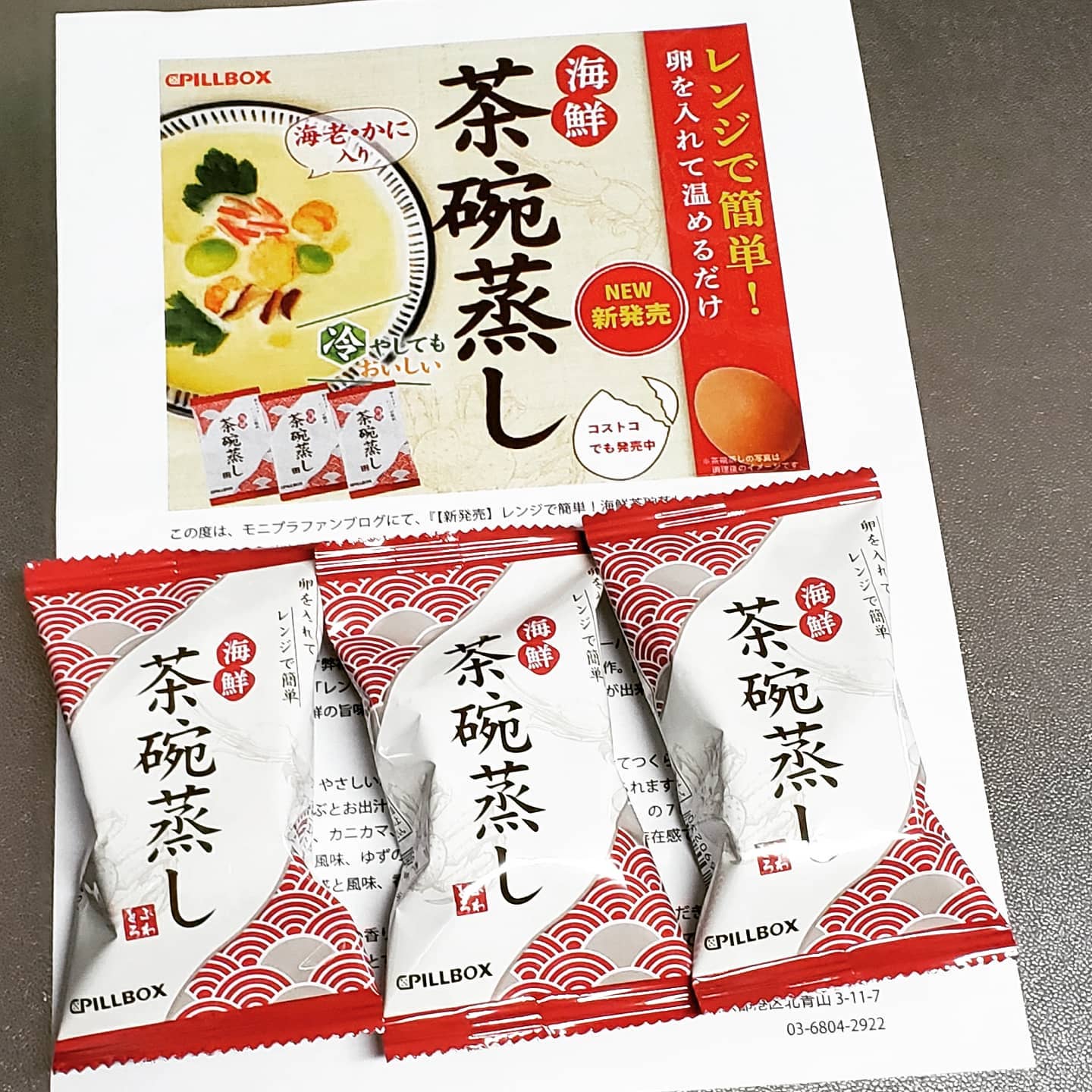 会員制大型スーパー コストコで大ヒット!累計500万食を突破した大人気商品『茶碗蒸し』の最新作「海鮮茶碗蒸し」の3包(6食分)セットです。たまごを入れてレンジで温めるだけの簡単調理はそのままに、海鮮の味わい深い旨味と香りが広がる、本格的な茶碗蒸しが出来上がります。 「海鮮茶碗蒸し」は、やさしい和風だしに、7種類の具材を合わせてつくられています。ぷるぷるの茶碗蒸しは、口に運ぶとお出汁があふれて、やさしい深みが感じられます。 具材は紅ずわいがに、カニカマ、海老、椎茸、三つ葉、枝豆、ゆず、の7種類。紅ずわいがにと海老の旨味、三つ葉の風味、ゆずのさわやかな香り、海鮮とカニカマの存在感で、スプーンですくうたびに異なる具材の食感と風味、香りがお楽しみいただけます。 インスタントとは思えない香りと味わいをご堪能いただけます。