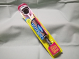 ①ブラシ部分を舌にあて、なでるように数回前後に動かし磨いてください。