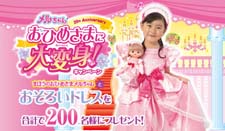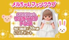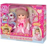 セット内容: ロングヘアメルちゃん(パンツ付き)、ドレス、まほうのティアラ、まほうのステッキ、ヘアバンド、てぶくろ、くつ、ブラシ、ミニブック