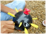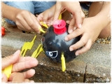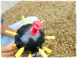 爆弾の形をした本体に、順番にピンを差していき、スイッチにピンを差し込んでしまうと爆弾のテッペンから水が飛び散ってしまう「スリル満点!水ドッカン」