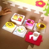 フードコート本体(レジスター付)、テーブル、いす×2、トレー、たべのもパーツ5種(ハンバーガー、うどん、カレーライス、たこやき、ドーナツ)、みずさし