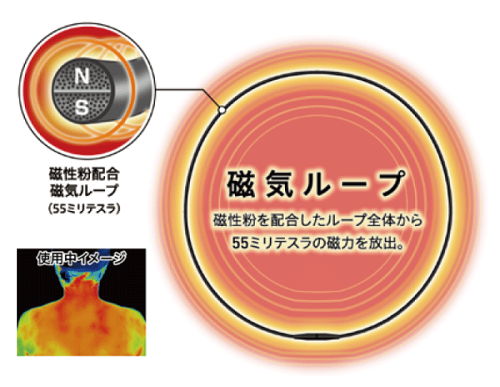 ネックレスのように首につけておくだけで、ループから放射される磁気が