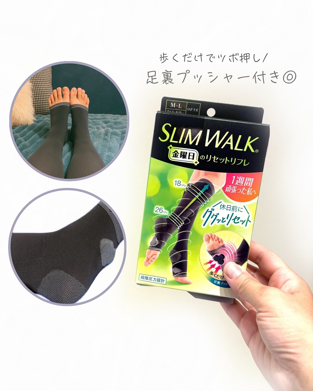 𝐍𝐄𝐖 スリムウォークから 歩くだけで足裏をツボ押しできるタイプが出たよ。.໒꒱°* 段階圧力設計でふくらはぎなどを ギュギュっとしてくれるのはもちろんだけど 歩く度に“足裏プッシャー”が ググっと足裏を押してくれるのがまたいいんだよね◎! 肌に直接接するものだから まるっと洗えるのも嬉しい “足裏プッシャー”は取り外し可能なので シーンに合わせて使ってみてね ✣✣–––––––––––––––––––––––––––––✣✣ スリムウォーク 金曜日のリセットリフレ👣 [チャコールグレー] @slimwalk_pip ✣✣–––––––––––––––––––––––––––––✣✣ #PR #ピップ株式会社 #スリムウォーク #SLIMWALK #着圧 #金曜日のリセットリフレ #ながら美容 #フットケア #monipla #pip_fan