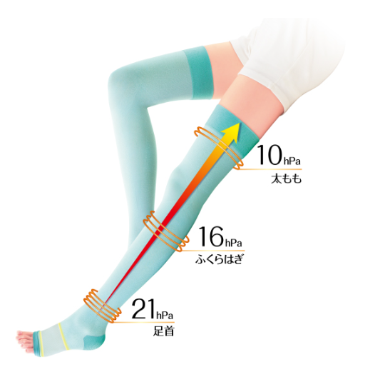 (足首21hPa、ふくらはぎ16hPa、太もも10hPa)