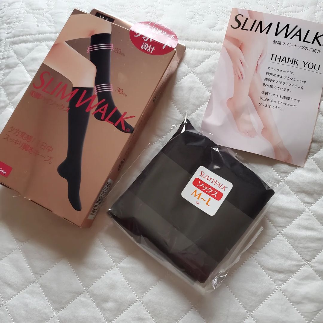 スリムウォーク「スリムウォーク 美脚ハイソックス」は、 たくさん歩いても♪ ギュギュッとひきしめスッキリ美脚!