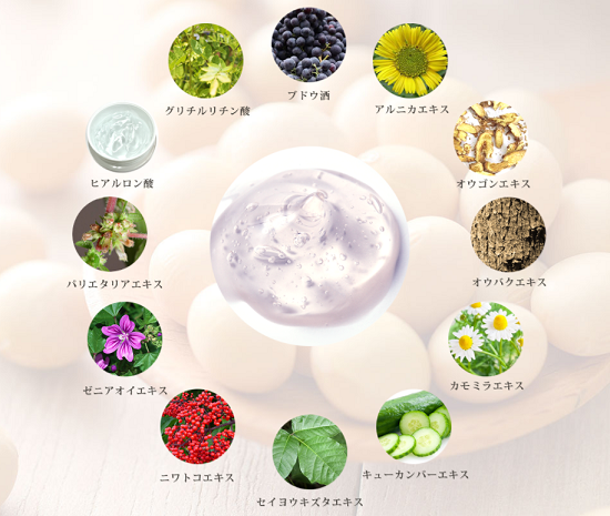 発酵エキスに、9種類の植物エキスが配合。植物のチカラであなたのお肌に優しく届けます。