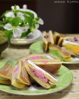 食べやすい半円サイズで10種類の味が楽しめるカラフルな洋風どら焼きです。