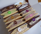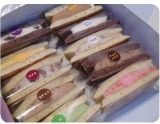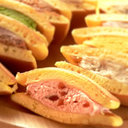 食べやすい半円サイズで10種類の味が楽しめるカラフルな洋風どら焼きです。