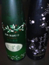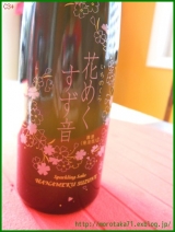【ぷらす1】日本酒とは思えない ★和製シャンパン★「花めくすず音」モニターになりました!! ★和製シャンパン★花めくすず音 300ml シュワシュワ泡立つ不思議なお酒『すず音』の特別限定品 目にも華やかなピンク色は、地元産の黒豆と紫黒米を用いて 作った物で合成着色料… 2010/09/05