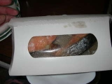 ポケットグリルのモニターをさせていただきました! 届いたのはこちら 裏側はこんな感じ こんなふうに筒状になっているので 両脇の折り目を折るとこんなかんじ この中に、冷凍してある鮭の切り身を入れて レンジ(600w)で3分チン! … 2012/05/10