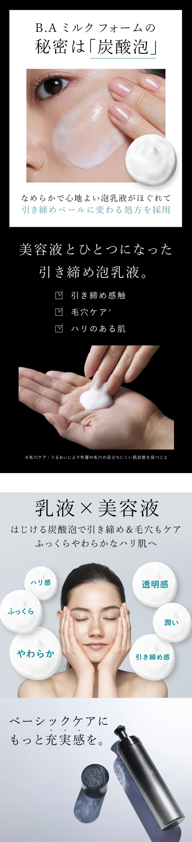 みずみずしい泡状の美容ミルクが肌*1でほどけるようになじみ、なめらかで、引き締まった明瞭な*2ハリ肌を目指す。どこから見ても美しい上向き印象を。